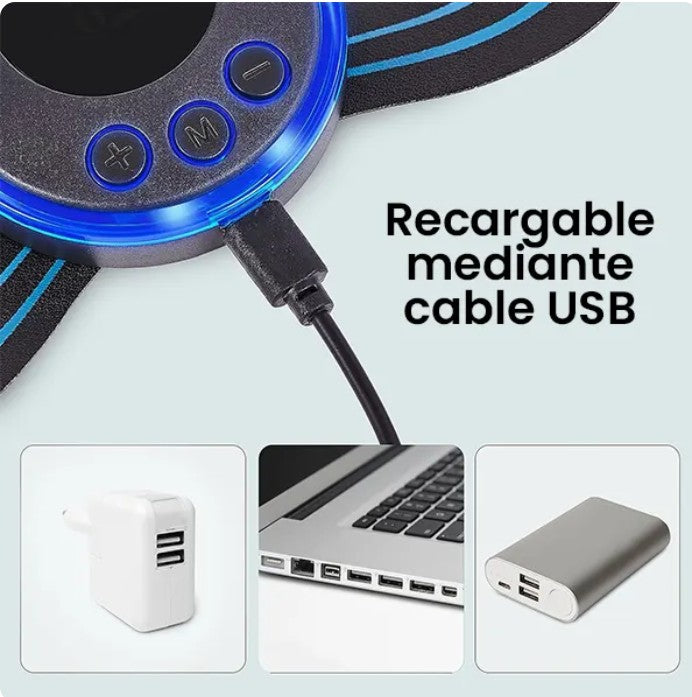 2. 6 modos de masaje: 6 modos ajustables, satisfacen diferentes necesidades. Puede presionar el botón de programa para seleccionar el modo deseado. Ajusta la intensidad del masaje que más te convenga. Mantenga presionado ON / INC para aumentar la intensidad y OFF / DEL para disminuir la intensidad.